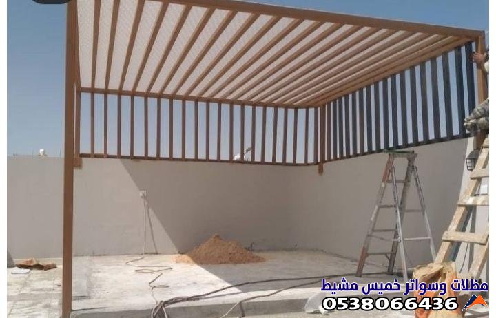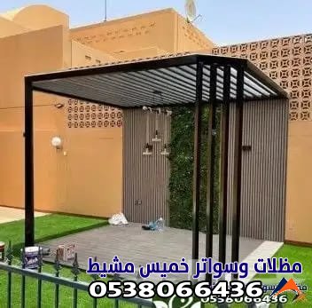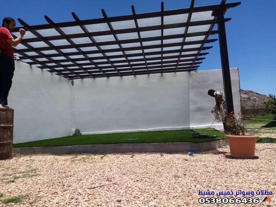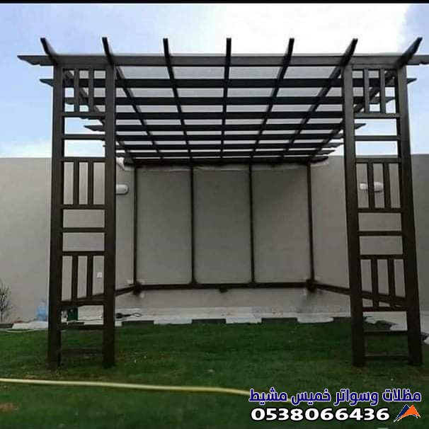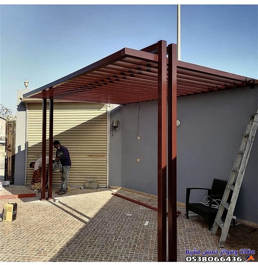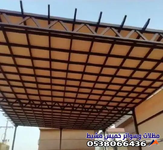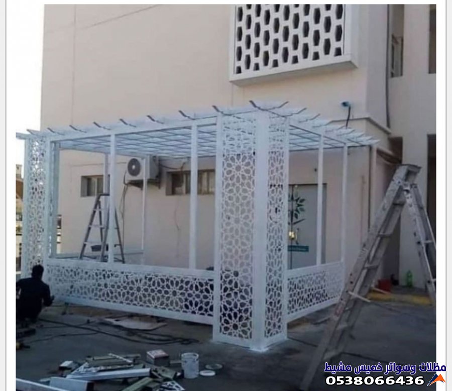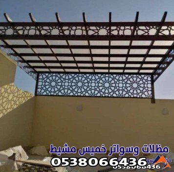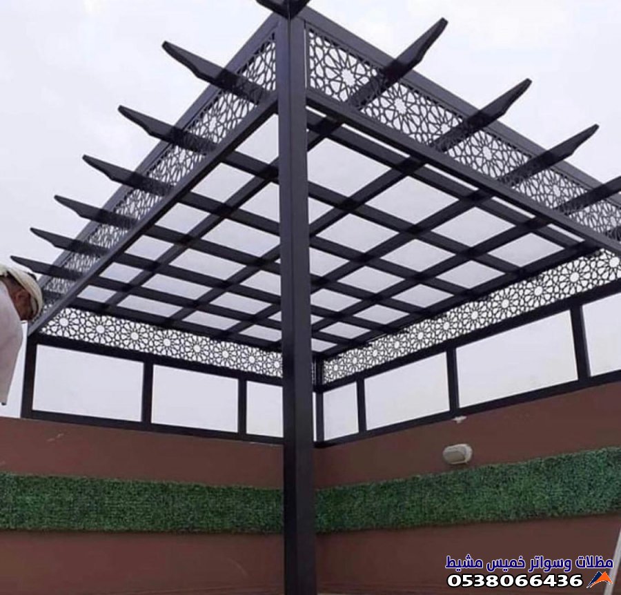 تصميم مظلات خارجية للحدائق من الحديد بأشكال عصرية متنوعة يتم تنفيذها من أجود أنواع الحديد الخام المقاوم للصدأ والتآكل والعفن وتتوفر مظلات استراحات الحديد بنوعيها المجدول والشرائح بأرقي التصاميم وبتغطيات من أجود أنواع القماش واشهرها تغطيات قماش ال بي في سي صناعة كورية والمانية وبأوزان وسماكات متفاوتة وبأفضل سعر بخميس مشيط .